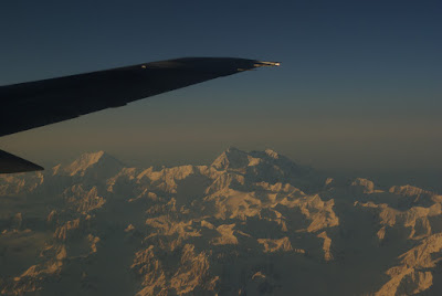 窓にかぶりつきながら、外を眺めていた。雲は多少出ているが、全ての景色を覆ってしまう程ではない。それにしても、アラスカの大地はでかい。何にも無い大地が永遠と続いている。山はまっ白な雪に覆われ、蛇行した川は凍っている。朝日を浴びた起伏のある山々を眺めていると、斜め前にひときわ大きな山が目に飛び込んできた。もしかして、あれはデナリ(マッキンレー山)だ!こんなにもハッキリと、目の前でデナリを見たのは初めてだった。大きく鋭い形をした山だ。どんどんデナリに近づいていき、真横にデナリが並んだ。すぐそこに、デナリがある。あの、デナリだ。