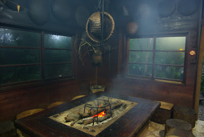 それから本日の宿「海山木」へ。ちょっと分かりづらい場所にあった。「海山木」は噂通り木々に囲まれ落ち着く場所であった。休憩スペースには本棚があり、茅葺き屋根の建物には囲炉裏があり、それを囲んでの食事。食事はとても種類が豊富で、さらに美味しい。満腹になるまで食べ、宿のおじいのトークに笑い、今日この宿に泊まる15人ほどと話しに花を咲かせた。三線も入り、大盛り上がり。そんな中、遅れてやってきた二人組の一人が僕の手相を見始めた。先祖を大切にしなさい、お墓参りとかもしていなさそうだから行きなさい、やりたいことがあるのならば、まっすぐ勝負して生きた方が良い、ダメ人間か成功者のどちらかになる、能力があるのに逃げている、覚悟が決まってそれに向けて走るまで沖縄に来るな、このままだとダメな大人になるなどといったコトを冬の沖縄最北端それも真夜中に語られ、頭がボーッとしながらも色々と考えを巡らしたのだった。そして、眠りについた。