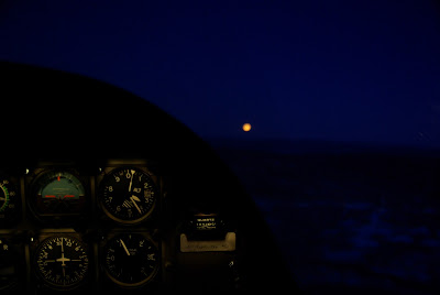 まだ、闇に包まれたフェアバンクスの夜景を眺めながらどんどん上昇して行った。気持いいなーと思う。大型旅客機と比べたら圧倒的に自由に空を飛べる。空との距離がぐっと近づいている感じがして、とても興奮した。先を眺めていると、月が輝いていた。そしてその反対の空は朝焼けで染められ始めていた。こんなに身近で朝と夜の境を感じられたのは生まれて初めてだった。地球は回っている。そして、夜が終わり、朝が来る。それを身をもって感じとれた瞬間だった。さらに、アラスカの大きな大きな大地を眼下に眺めた。蛇行する川は凍てつき、山は雪でまっ白に覆われていた。アラスカって、本当にでかいなーと思いながら乗っていると、飛行機が旋回し始めた。到着するのだ。1時間程度のフライトで目的地に到着。大きく旋回し、雪の滑走路に降り立った。
