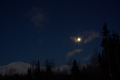 外に出ると月は地平線に一度沈んで、再びすぐに昇ってきていた。これも北極圏ならではの現象。一瞬、さっき月が沈んだはずなのに、もう昇ってくるってなぜだ?と混乱したが、考えてみれば当たり前だ。部屋に戻って「おくりびと」と「アラスカ物語」を読む。今夜はアラスカ物語を読んで行ってみたかったワイズマンという村にジャックと言う男を尋ねる。ジャックは自然に根ざした生活を今でもして、猟師としての腕も抜群だと言う。