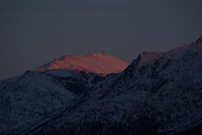 その後も、ビルはいろいろと教えてくれた。飛行機が上を飛んでいくよ、あれは鉱物の採掘場跡だ、なんていう風に。そして、ついにこの時がきた。極めつけはデナリだ。黄金色に染められた空を背景に雲海の中から山の頂が顔を出していた。「あの山は高いから、雲を突き抜けているんだ。あれがデナリだよ」。あれが、デナリか、ついにデナリに出会う事が出来た。それにしても大きな山でどっしりとしている。惚れ惚れするほど威風堂々とした山だ。植村直己さんはこの山の天辺まで1人で登ったのかと思うと、改めて彼の偉大さと超人っぷりを感じた。そして、このどこかに眠っているんだと思うと、不思議な気持になった。