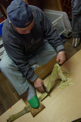 それから海の向こうに礼文島を眺め、おぼろ昆布作り体験。秋元昆布加工場で昆布作りを体験させてもらう。おぼろ昆布ととろろ昆布の違い。それは、おぼろ昆布は昆布を専用の刃物で人が一枚一枚削って作るもので、とろろ昆布は昆布を重ねて機械で削るもの。こんなことも初めて知った。利尻といえば昆布。利尻昆布。それほど有名だ。まずは、おぼろ昆布の作り方を職人さんに教えて頂いて、体験する。これがなかなか難しい。職人さんはいとも簡単に薄くて均一なおぼろ昆布を作り上げていくが、そうは簡単に出来ない。手に力が入りすぎてしまったり、均一に薄く削れない。昆布と格闘しながら、試行錯誤をして削っていく。小さく削れてしまったり、厚さが均一じゃなかったりと。難しかったけれど、とても楽しい経験だった。ツアー参加者の方の中には、本当に初めて?とおもうほど上手におぼろ昆布作りをされる方もいた。