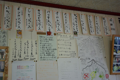 それから、バスに乗り込み利尻島の簡単な説明をうける。なんと冬の利尻島は曇りが多く、利尻富士の頂上が見えるのは月間30時間程度だとか。こりゃ、びっくりだ。もし、頂上が見れたらそうとうラッキーなのだ。ほどなくすると、バスは「ミルピス」の前で停車。なんじゃらほい「ミルピス」って。どう考えても、ミルクとカルピスを混ぜた飲み物でしょと思った。とりあえず、みんなでぞろぞろと古めかしい店内へ。怪しい。抜群に田舎のB級な店。こういうのは大好きだ。ミルピスというネーミングセンス、店の外観、店内のメニューの張り方、全て完璧なB級店。