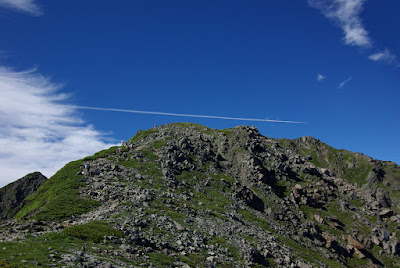 なんと、7時30分ぐらいに北岳山荘に到着しテントを張った。余裕で農鳥岳に行けるのだが、土砂崩れなのか農鳥岳の登山口からのバスが走っているとかいないとか情報が定かでなかったので、行くのを止めた。まあ、次の楽しみと言うことで。水と行動食とカメラだけを持って間ノ岳へ。ここは、広くなだらかな場所が続くので走るのには最高だ。トレイルランの高所トレーニングにはなかなか良い場所だった。ちょっと走ったけれど、景色もよくとても気持よかった。