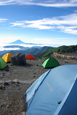 テントに戻り、食事をして、寝袋を干したあと、富士山を眺めながら本を読んだ。こんなにも贅沢な時間の使い方は1人じゃないとなかなか難しい。何人かでいると、農鳥岳まで絶対に行くことになる。複数でいる時に空白の時間は嫌われるが、1人の時に空白の時間は好まれる。そんなことをしていたら、夕方になった。今日もラーメンに野菜を入れておにぎりを食べて終了。山の料理を充実させたい物だ。山料理を勉強しようかな。とは言っても、あまり興味がないからいつもこのメニューなんだろう。