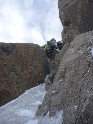 そんな俺の姿を見て、Louisはもういいよ。時間がない、さっさと行くぞという感じで「Go, Go.」と話した。僕はホッとした。ここで、降りるという判断をされたら頂上を目の前にして、とてもやりきれない気持になってしまっていただろうから。ただ、状況は最悪で、すぐに頂上に立って下山しなければならない。Louisは、急いで登るぞと言った。本当にペースが速くなり、残り100メートルほどを必死で食らいついて登った。頂上直下は岩場だった。そして、その手前は凍てついた氷だった。滑って落ちる危険があった。アイゼンをしっかりきかせた。そして、Louisが、アイススクリューを出して、支点を作り俺の安全を確保してくれた。